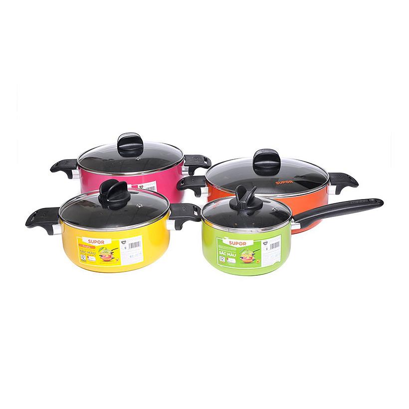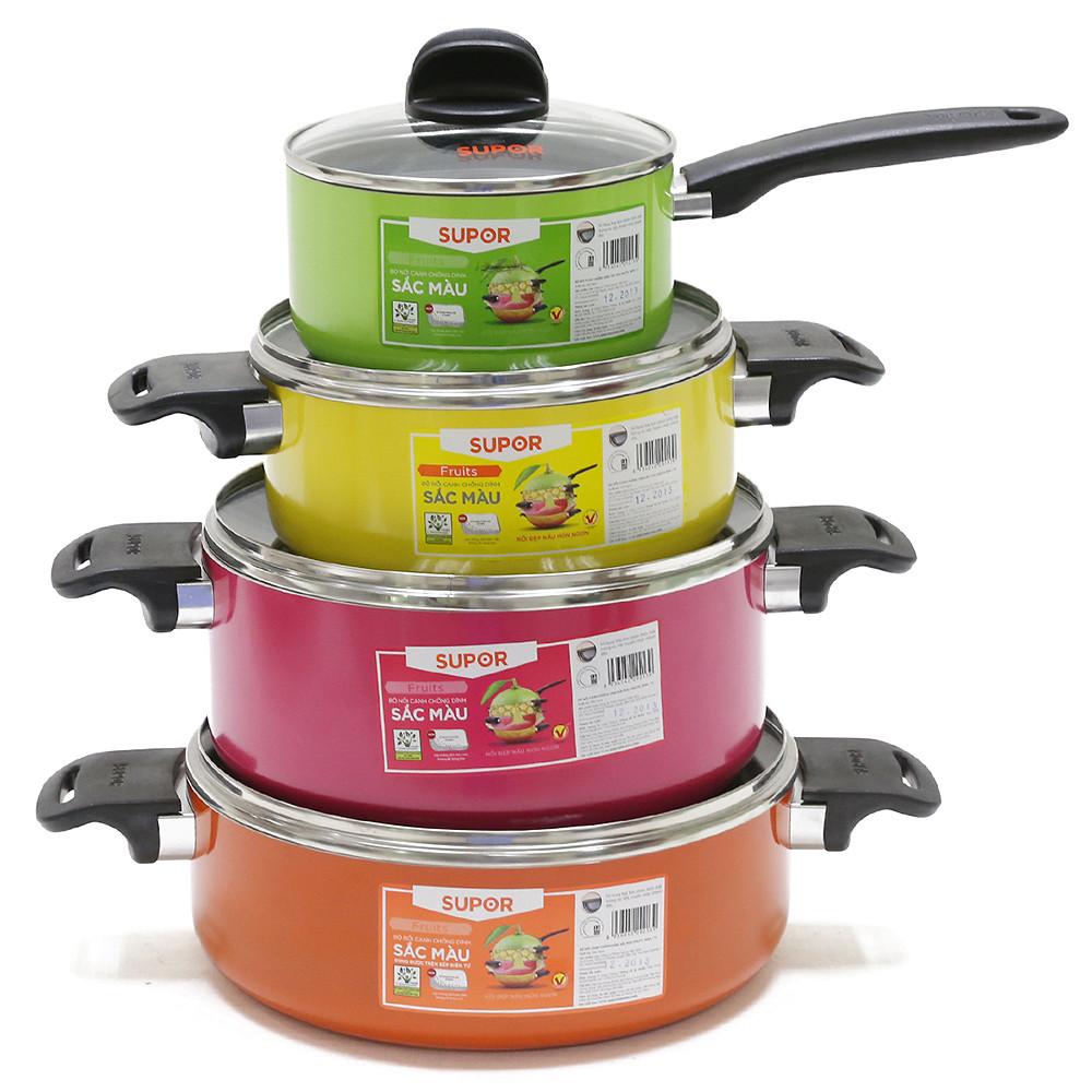 Bộ Nồi Canh Chống Dính Sắc Màu 4 Cái Supor