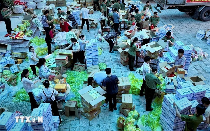 Phòng Hậu cần Công an thành phố Huế đã nhanh chóng huy động hàng trăm cán bộ, chiến sỹ tham gia phân loại, đóng gói hàng hóa để vận chuyển và trao tận tay bà con tại các vùng bị ảnh hưởng bởi lũ lụt.