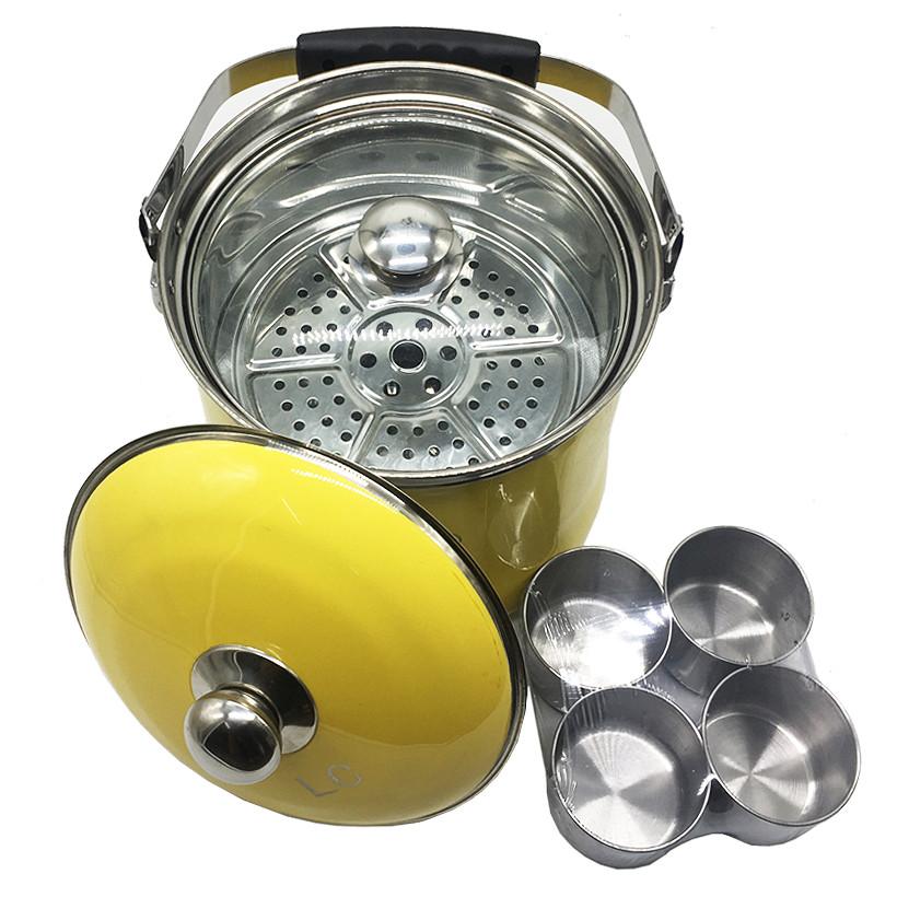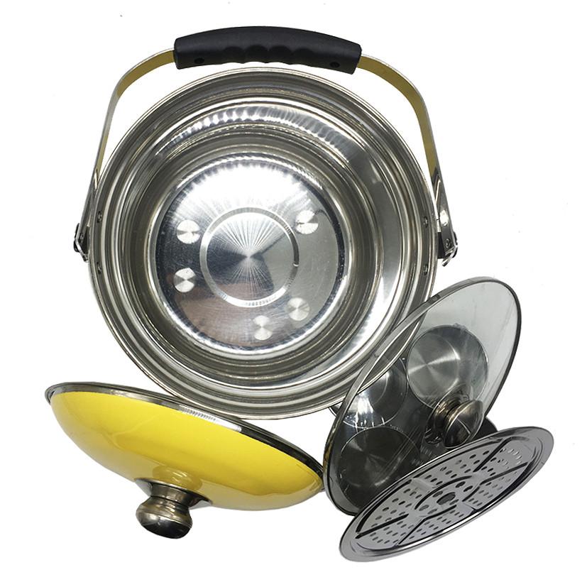 Bộ sản phẩm bao gồm : 1 khoang ủ giữ nhiệt, 1 nồi nấu bên trong, 1 khay hấp inox, 1 nắp thủy tinh, 1 nắp inox 2 lớp cách nhiệt , 4 cốc inox phục vụ cho việc đun, hấp nhiều món ăn cùng lúc.