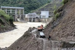 Những vạt đất đá lớn sạt xuống phủ kín mặt đường, khiến mặt đường bị thu hẹp chỉ còn đủ cho một làn xe di chuyển sát mép vực, bên dưới là dòng sông Gâm cuộn xiết.
