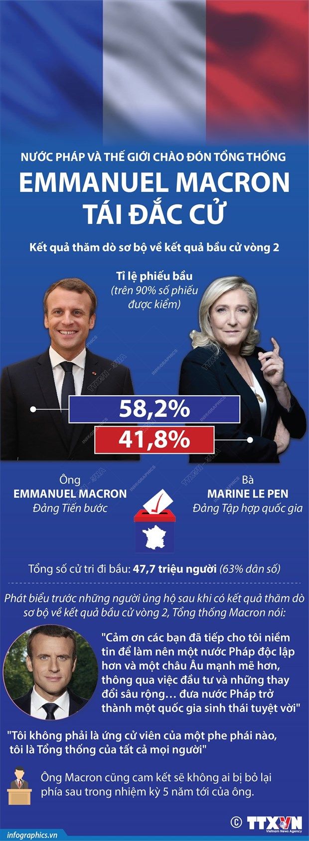 [Infographics] Thế giới chào đón Tổng thống Emmanuel Macron tái đắc cử