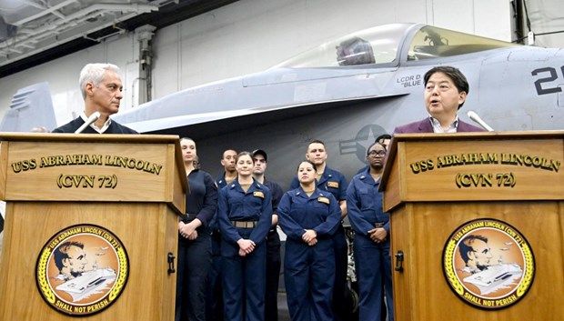Ngày 23/4, Ngoại trưởng Nhật Bản Yoshimasa Hayashi và Đại sứ Mỹ tại Nhật Bản Rahm Emanuel đã cùng nhau lên tàu sân bay Abraham Lincoln của Hải quân Mỹ sau khi tàu này tham gia tập trận.