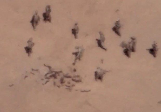 Đoạn video được quay bằng máy bay không người lái cho thấy những gì được mô tả là các lính đánh thuê nước ngoài phủ cát gần căn cứ Gossi.