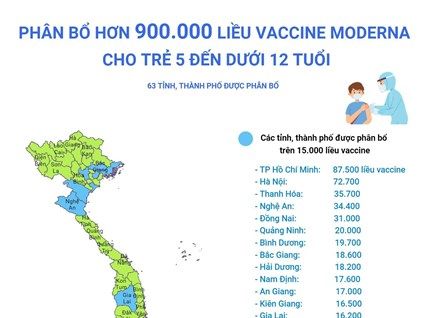 Phân bổ hơn 900.000 liều vaccine Moderna cho trẻ 5 đến dưới 12 tuổi