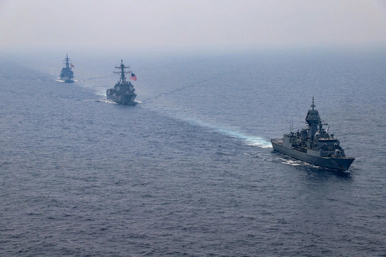 Chiến hạm Mỹ, Nhật Bản và Australia tập trậnnhằm phát đi thông điệp thúc đẩy tự do hàng hải và ủng hộ một Ấn Độ-Thái Bình Dương tự do và mở.
