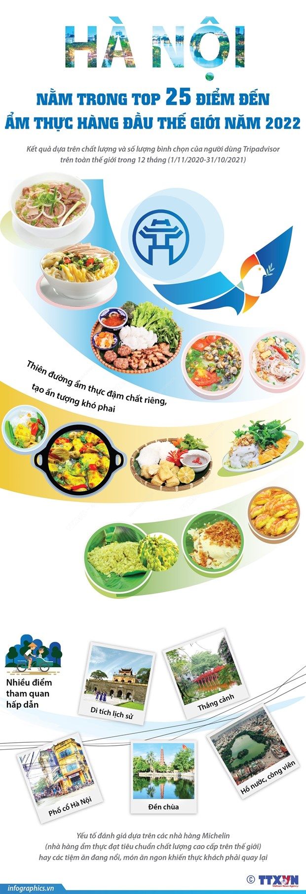 Hà Nội vừa được tôn vinh trong top 25 điểm đến ẩm thực hàng đầu thế giới năm 2022 do người dùng trang du lịch nổi tiếng Tripadvisor bình chọn.