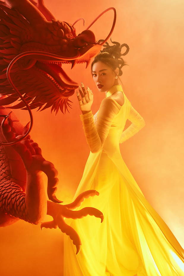 Nhân dịp Tết Nhâm Dần, Khánh Vân gửi đến khán giả bộ ảnh Xuân với ý tưởng đậm chất phương Đông huyền bí, lấy cảm hứng từ hình tượng Rồng và những biểu trưng tốt đẹp trong văn hóa tâm linh người Việt.
