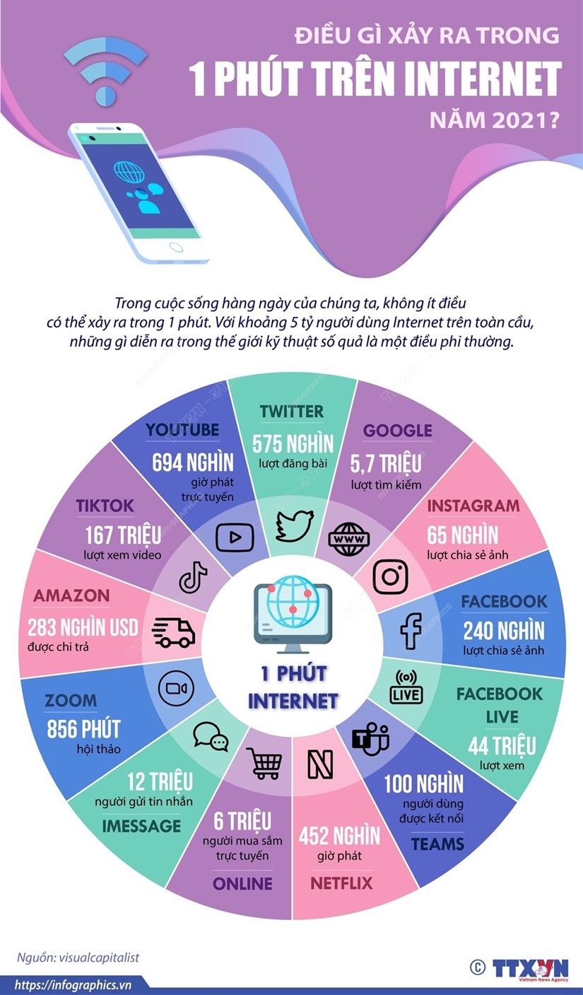 Trong một phút trên Internet, có 5,7 triệu lượt tìm kiếm trên Google, 44 triệu lượt xem Facebook live và 167 triệu lượt xem video trên Tiktok...
