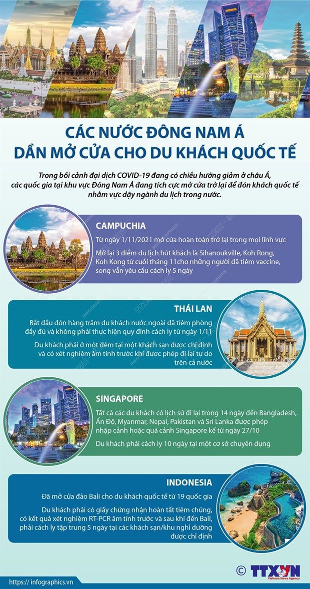 Trong bối cảnh đại dịch COVID-19 đang có chiều hướng giảm ở châu Á, các quốc gia tại khu vực Đông Nam Á đang tích cực mở cửa trở lại để đón khách quốc tế nhằm vực dậy ngành du lịch trong nước.