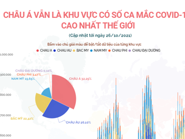Tính theo số liệu cộng dồn, châu Á hiện vẫn là khu vực có số ca mắc COVID-19 cao nhất với trên 78,8 triệu ca; châu Âu có trên 63,8 triệu ca; Bắc Mỹ có trên 54,8 triệu ca.