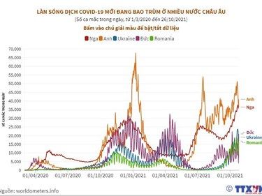 Làn sóng dịch COVID-19 mới đang bao trùm một số nước châu Âu với số ca mắc tăng liên tiếp, trong đó Anh và Nga là những quốc gia tăng cao nhất.