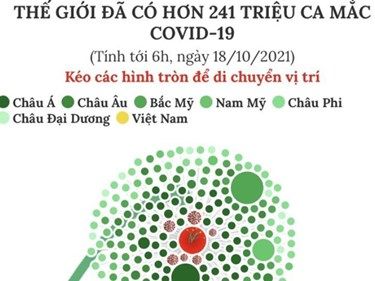 Theo trang thống kê worldometers.info, tính tới 6h ngày 18/10/2021, thế giới đã ghi nhận hơn 241 triệu ca mắc COVID-19.