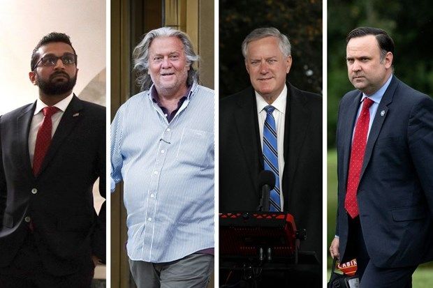 Bốn nhân vật này bao gồm cựu Chánh Văn phòng và Phó Chánh Văn phòng Nhà Trắng Mark Meadows và Dan Scavino, cựu cố vấn hàng đầu Steve Bannon và cựu quan chức Bộ Quốc phòng Kash Patel.