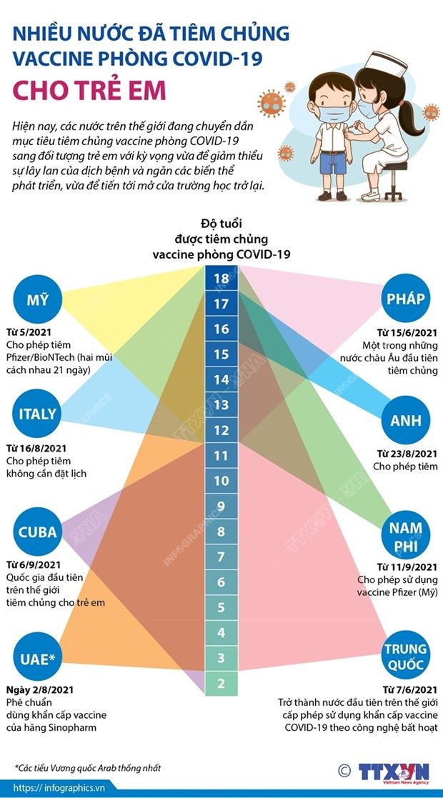 [Infographics] Nhiều nước tiêm vaccine phòng COVID-19 cho trẻ em
