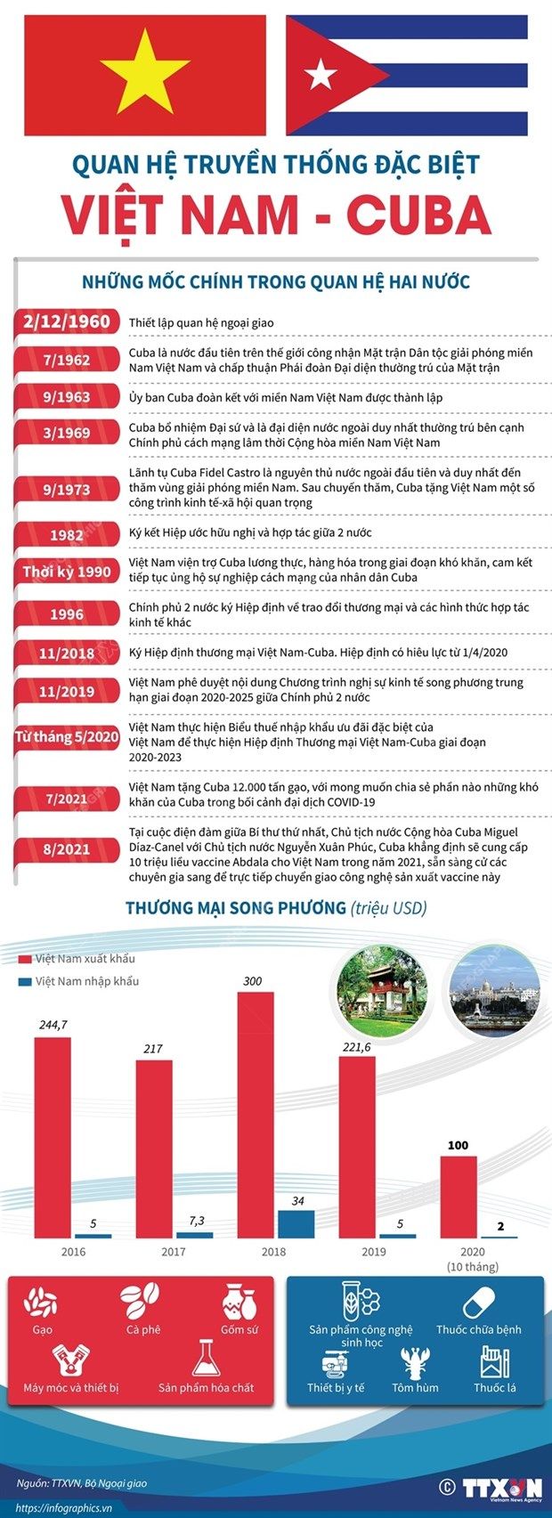 [Infographics] Quan hệ truyền thống đặc biệt Việt Nam-Cuba