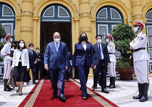 Sáng 25/8, tại Phủ Chủ tịch, Chủ tịch nước Nguyễn Xuân Phúc tiếp Phó Tổng thống Hoa Kỳ Kamala Harris thăm Việt Nam.