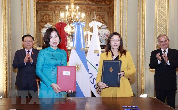 Trong khuôn khổ chuyến thăm chính thức Argentina, sáng 25/4/2023 (theo giờ địa phương), tại thủ đô Buenos Aires, Chủ tịch Quốc hội Vương Đình Huệ chứng kiến Lễ ký kết các văn kiện.