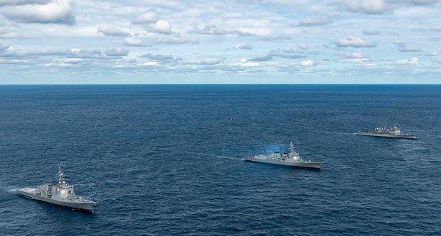 Cuộc tập trận này có sự tham gia của ba tàu khu trục lớp Aegis, gồm ROKS Yulgok Yi I của Hàn Quốc, USS Benfold của Mỹ và JS Atago của Lực lượng Phòng vệ Hàng hải Nhật Bản.