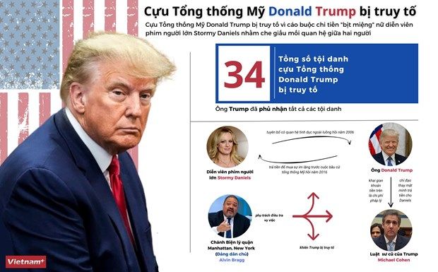 Cựu Tổng thống Mỹ Donald Trump bị truy tố vì cáo buộc chi tiền bịt miệng nữ diễn viên người lớn Stormy Daniels nhằm che giấu mối quan hệ giữa hai người.