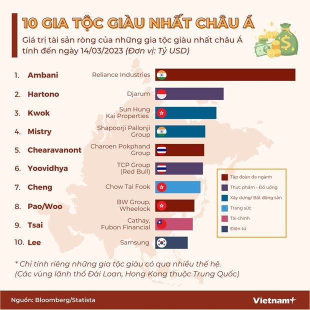 [Infographics] 10 gia tộc giàu nhất châu Á, nhà Samsung đứng cuối bảng