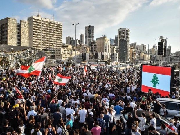 Người dân xuống đường biểu tìn khi đồng bảng Liban, vốn đã mất hơn 95% giá trị kể từ năm 2019, đã giảm xuống mức thấp kỷ lục mới là gần 56.000 bảng đổi 1 USD trên thị trường song song ngày 25/1.