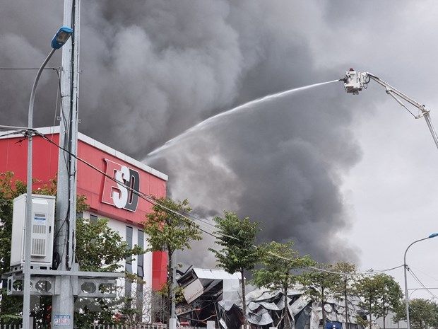 Bước đầu xác định vụ cháy lớn tại Công ty ESD KOREA VINA, Khu công nghiệp Quế Võ, phường Nam Sơn, thành phố Bắc Ninh không có thiệt hại về người, ước tính thiệt hại tài sản hàng trăm tỷ đồng.
