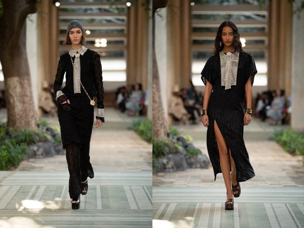 Các chi tiết cây cỏ, đường kẻ sọc, khối hình học, chuỗi dây chuyền như thác đổ trứ danh cùng nét duyên dáng của ren đăngten khiến các phom dáng quen thuộc của Chanel khoác lên diện mạo mới.