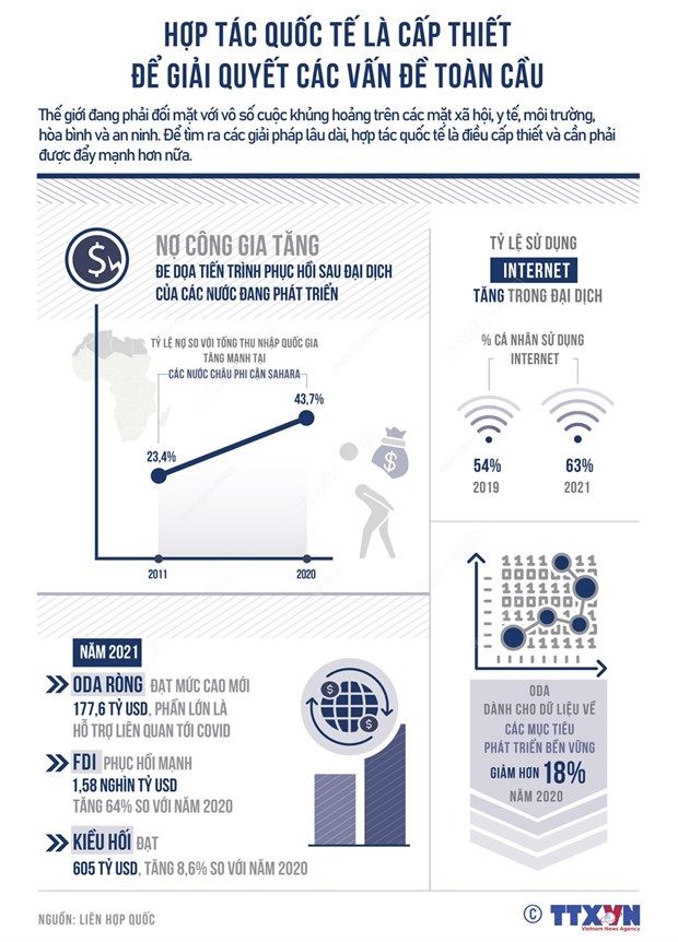 Để tìm ra các giải pháp lâu dài giải quyết các cuộc khủng hoảng trên các mặt xã hội, y tế, môi trường, hòa bình và an ninh, hợp tác quốc tế là điều cấp thiết và cần phải được đẩy mạnh hơn nữa.