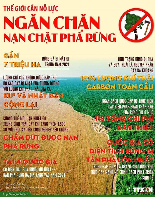 [Infographics] Thế giới cần nỗ lực ngăn chặn nạn chặt phá rừng