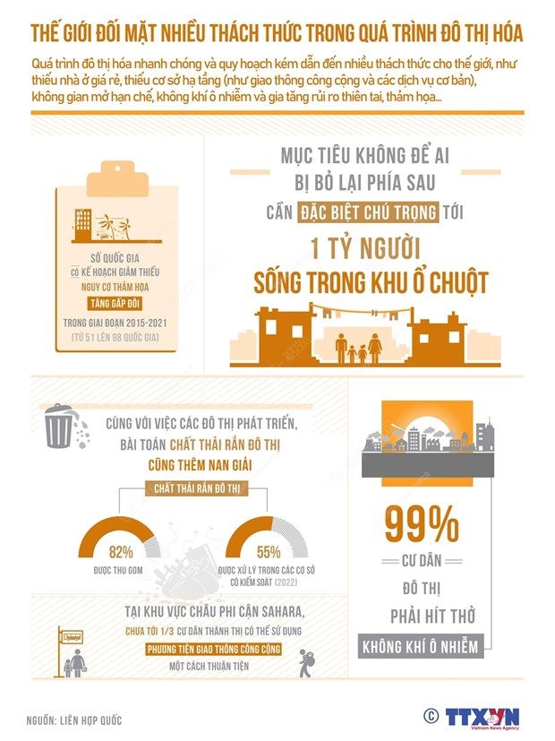 Quá trình đô thị hóa nhanh chóng và quy hoạch kém dẫn đến nhiều thách thức cho thế giới, như thiếu nhà ở giá rẻ, thiếu cơ sở hạ tầng, không gian mở hạn chế, không khí ô nhiễm...