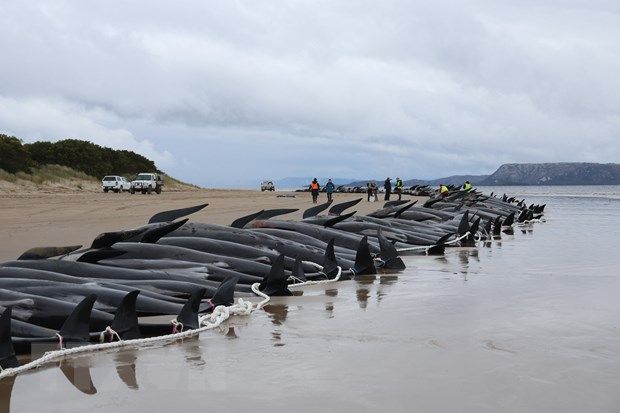 Khoảng 30 con cá voi hoa tiêu đã được đưa trở lại đại dương một ngày trước, tuy nhiên gần 200 con đã chết do mắc cạn trên bãi biển ở bang Tasmania, miền Nam Australia.