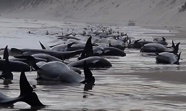 Khoảng 200 con cá voi hoa tiêu đã chết và chỉ có 35 con sống sót sau khi mắc cạn trên bãi biển Ocean Beach ở phía Tây Tasmania của Australia.