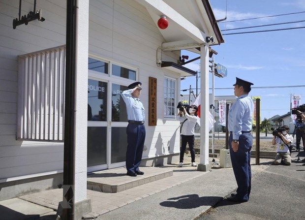 Một bốt gác của cảnh sát ở thị trấn Futaba, tỉnh Fukushima, nơi vẫn vắng bóng người sau thảm họa hạt nhân do trận động đất kèm sóng thần gây ra cách đây hơn 11 năm, đã mở cửa trở lại vào ngày 29/8.