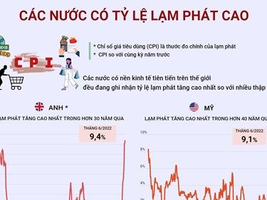 Tính đến tháng 6/2022, chỉ số giá tiêu dùng (CPI) tại nước Anh tăng 9,4% so với cùng kỳ năm trước CPI tại Mỹ tăng 9,1%, Áo tăng 8,5%, Italy tăng 8,0%...