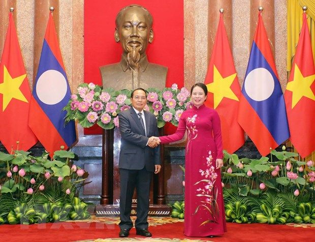 Phó Chủ tịch nước Võ Thị Ánh Xuân và Phó Chủ tịch nước Lào Bounthong Chitmany nhất trí hai bên đẩy mạnh hơn nữa hợp tác thương mại, đầu tư, quan tâm giải quyết khó khăn, vướng mắc cho doanh nghiệp.