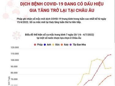 Dịch bệnh COVID-19 đang có dấu hiệu gia tăng trở lại tại châu Âu do tác động của biến thể phụ BA.5, thể hiện rõ ràng nhất tại Pháp, Italy khi số ca mắc mới tăng liên tục từ cuối tháng Năm.