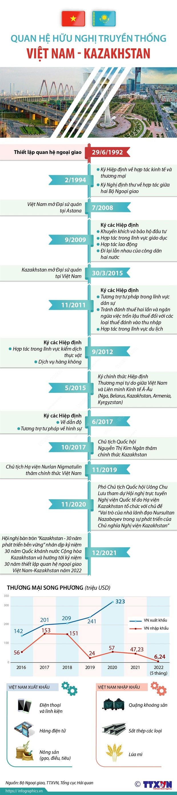 [Infographics] Quan hệ hữu nghị truyền thống Việt Nam-Kazakhstan