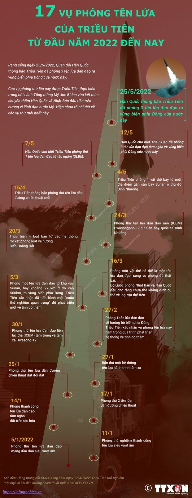 [Infographics] 17 vụ phóng tên lửa của Triều Tiên kể từ đầu năm 2022