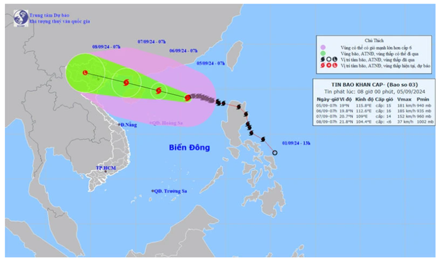 Siêu bão số 3 mạnh cấp 16, giật trên cấp 17, cảnh báo mưa rất to từ đêm 6/9