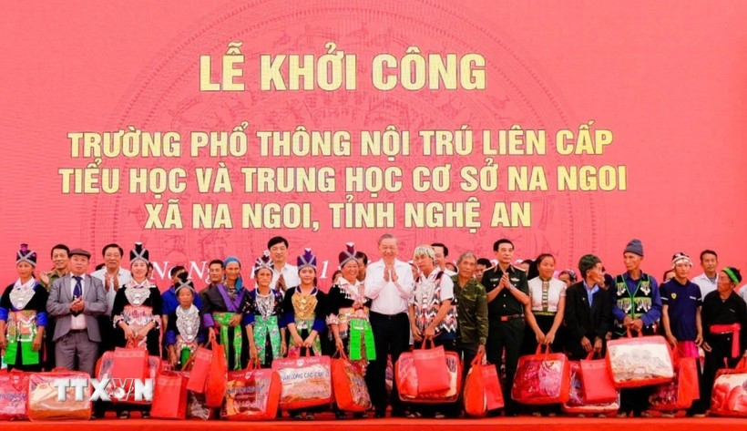Tổng Bí thư Tô Lâm dự lễ khởi công xây dựng trường nội trú liên cấp Na Ngoi, góp phần nâng cao giáo dục vùng biên giới Nghệ An, tạo cơ hội phát triển cho học sinh.
