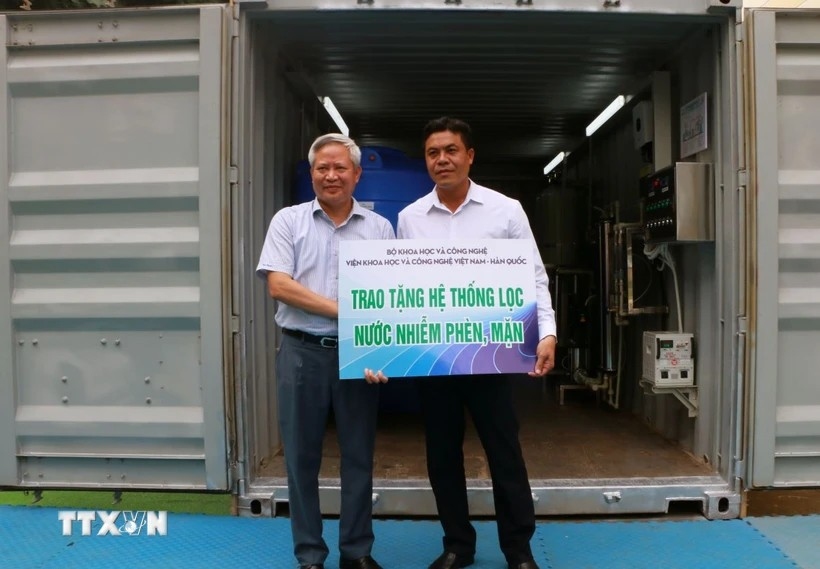 Được hỗ trợ máy lọc nước từ Viện Khoa học và Công nghệ Việt Nam-Hàn Quốc, người dân cũng như các em học sinh Trường Dân tộc nội trú Trung học cơ sở huyện Trần Đề rất phấn khởi.