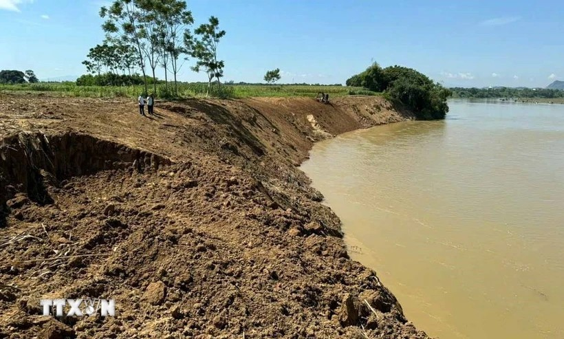 Sinh sống ven bờ sông Chu đã vài chục năm, nhưng đây là lần đầu tiên ông Đỗ Bá Cường (thôn Hải Thành, xã Thọ Hải) thấy bờ sông bị sạt lở nhanh và tiến sát vào khu dân cư đến như vậy.