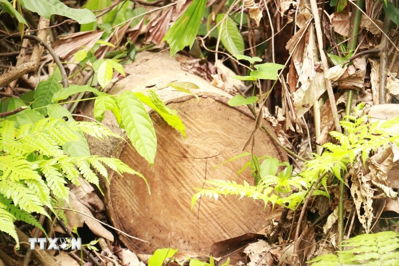 Dấu vết trên những gốc cây đã bị chặt hạ cho thấy có một số cây mới bị chặt hạ do vết cưa ở gốc còn mới, một số cây đã bị chặt hạ nhiều ngày do vết cưa đã cũ và phần còn lại của gốc cây mọc chồi non.