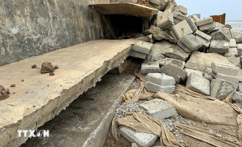 Do ảnh hưởng của triều cường, sóng lớn với tần suất cao và ảnh hưởng của mưa, lũ, nước biển đang ngày càng lấn sâu vào bờ, tạo thành những khối sạt lở lớn.