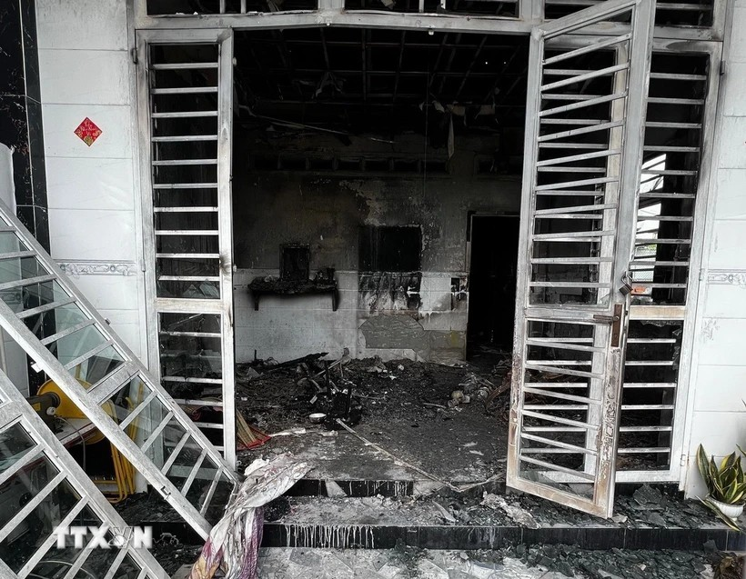 Do ngọn lửa bùng cháy quá lớn, mọi người không thể tiếp cận ngôi nhà thuộc ấp Trường Phú, xã Trường Đông, thị xã Hòa Thành, tỉnh Tây Ninh để cứu các nạn nhân.