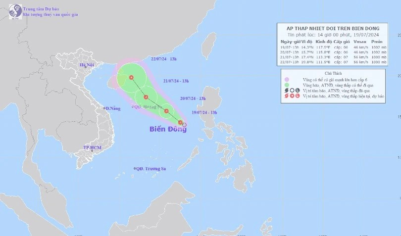 Sức gió mạnh nhất vùng gần tâm áp thấp nhiệt đới mạnh cấp 6 (39-49km/h), giật cấp 8; di chuyển theo hướng Tây Bắc với tốc độ 5-10km/h.