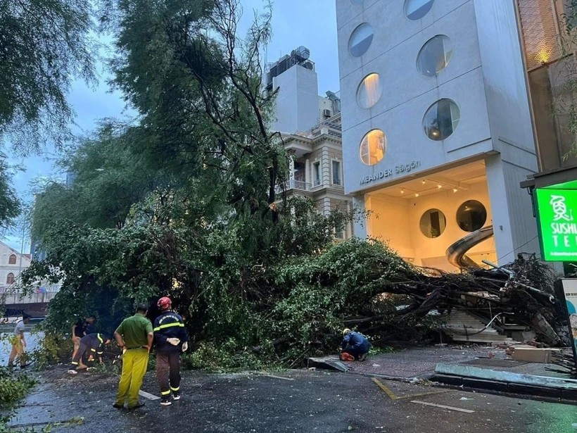 Cây gãy đổ hàng loạt trong mưa giông tại Thành phố Hồ Chí Minh
