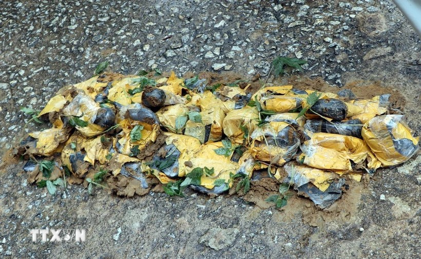 Lực lượng chức năng Công an tỉnh Kon Tum tổ chức tiêu hủy 148 cây sâm giống 1 năm tuổi giả Ngọc Linh - tang vật trong vụ Lừa đảo chiếm đoạt tài sản bằng hình thức bán cây giống Sâm Ngọc Linh giả.