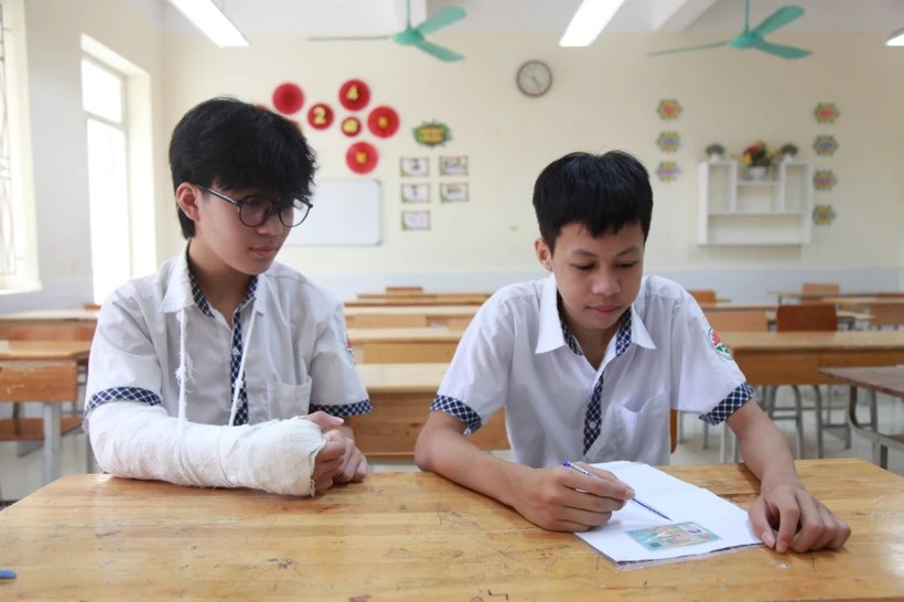 Trong kỳ thi vào lớp 10 năm nay, Hà Nội có 9 thí sinh bị gãy tay, 3 em cần sự hỗ trợ y tế. Các thí sinh này đã được bố trí các phòng thi riêng.