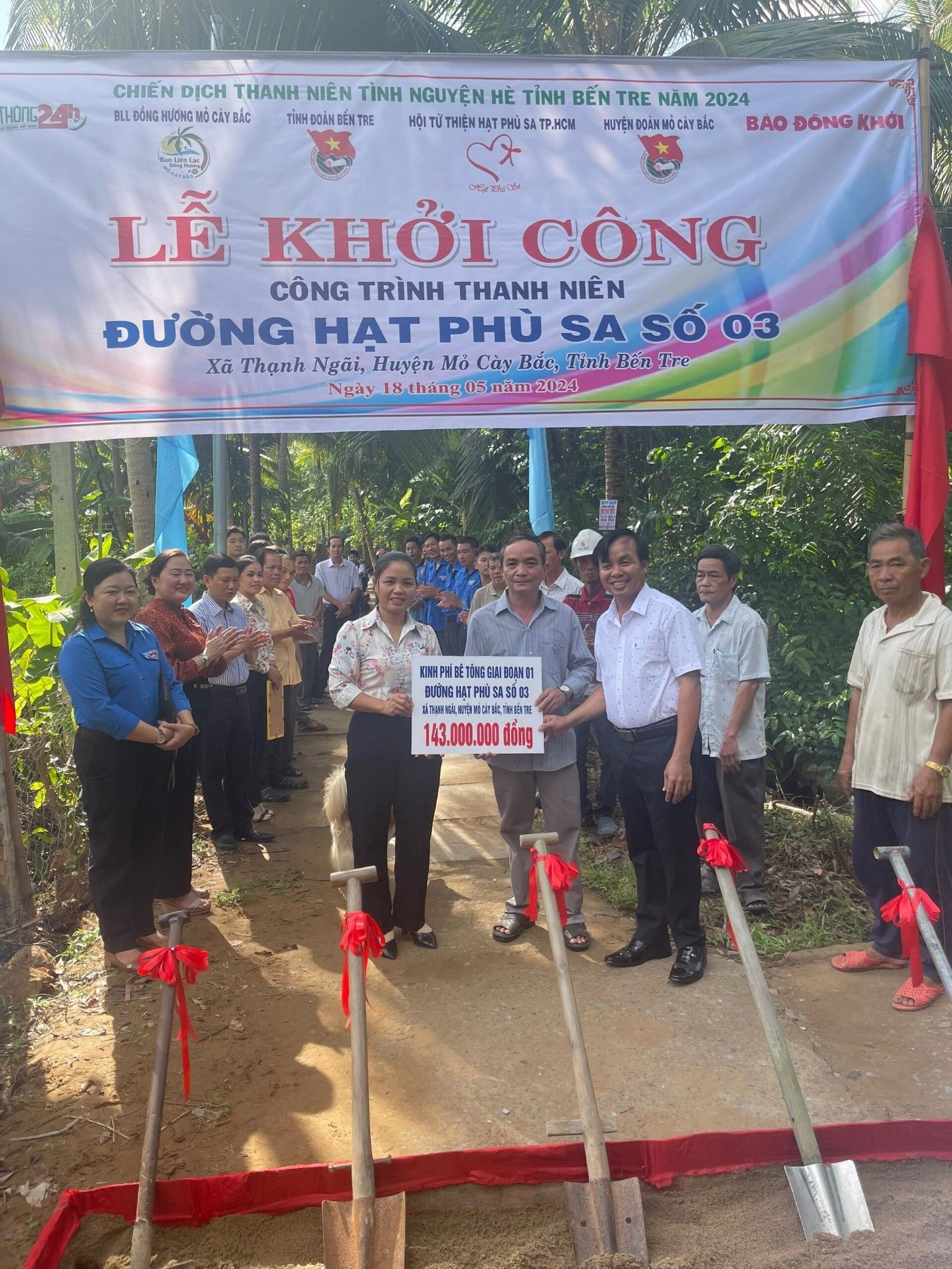 Đoàn công tác do Giao thông 24h phối hợp với Hội Từ Thiện Hạt Phù sa và Ban Liên lạc đồng hương huyện Mỏ Cày Bắc, tỉnh đoàn Bến Tre mới đây đã tổ chức Lễ Khởi công xây dựng nhiều công trình ý nghĩa tại tỉnh Bến Tre.